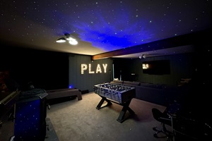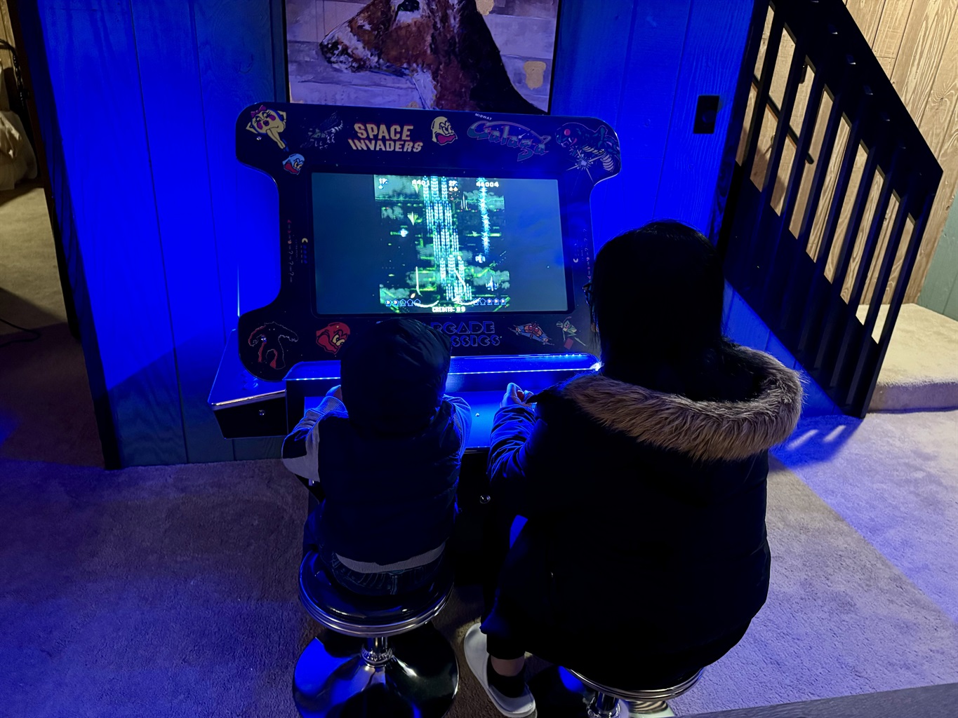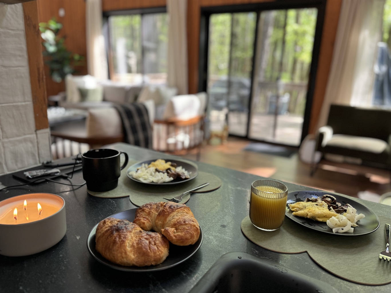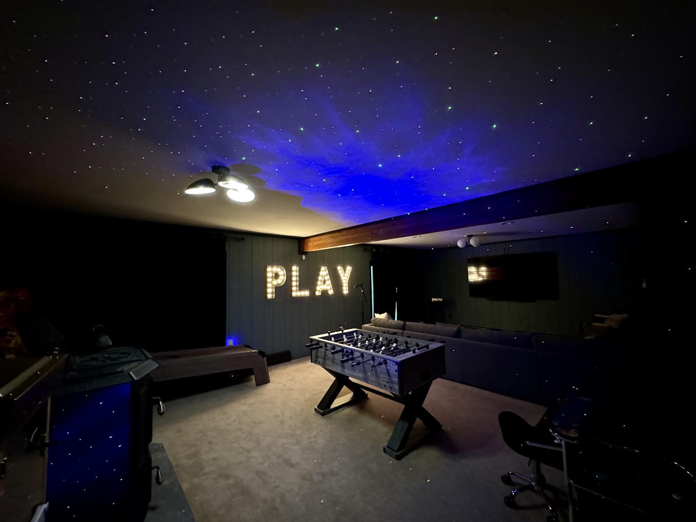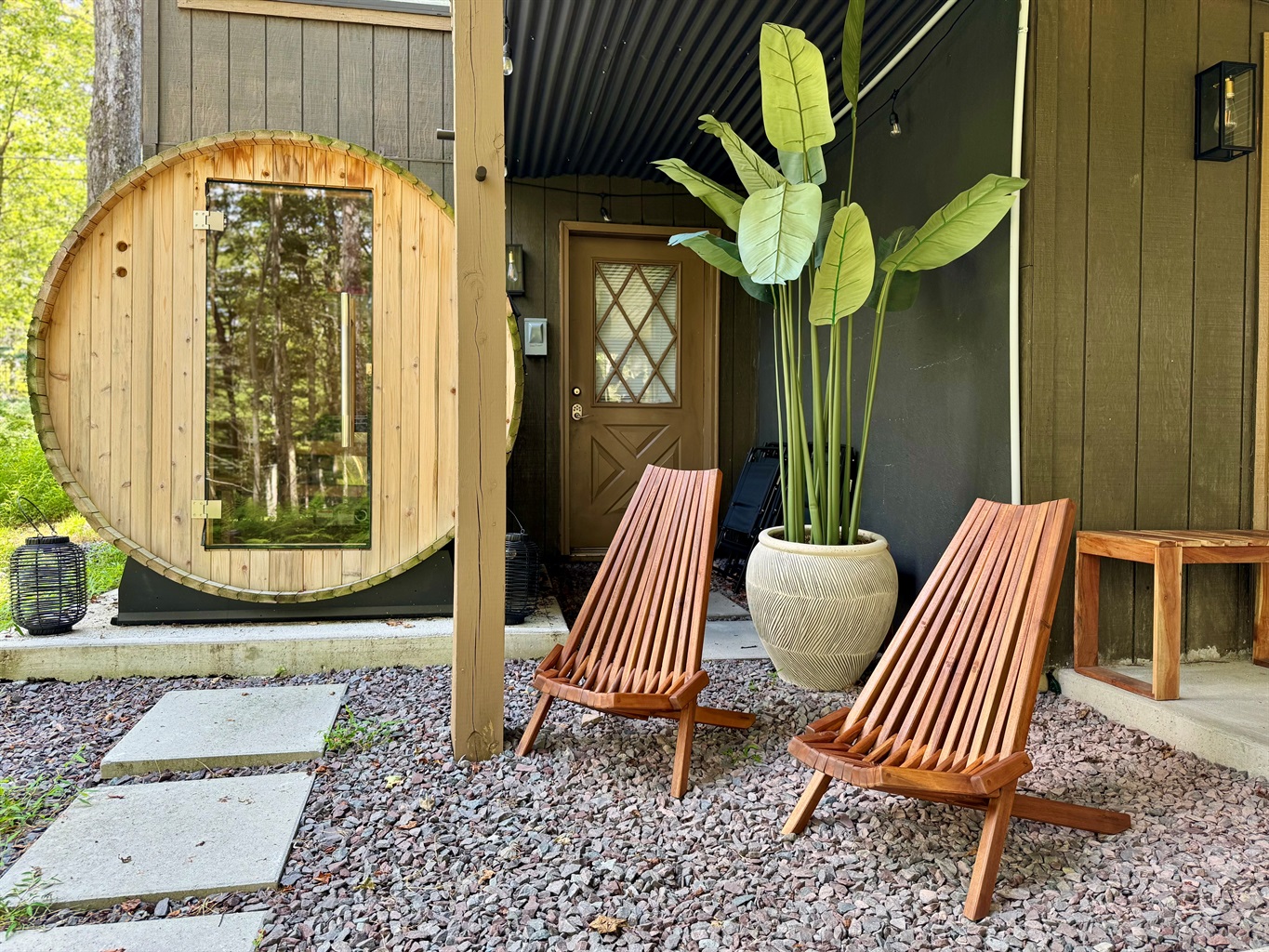 Our chalet spans three floors with a large loft, arcade game room, theater room, and well stocked kitchen+coffee bar, as well as an amazing outdoor space with covered patio, 7-seat hot tub, barrel sauna, multiple fire pits, ensuring everyone in your group finds something to enjoy. Whether you’re an outdoor adventurer, video gamer, music lover, bookworm, wellness enthusiast, karaoke star, poker shark, Lego maniac, gourmet chef, or coffee aficionado, we’ve got you covered – rain or shine. Oh, and bring the electric car.