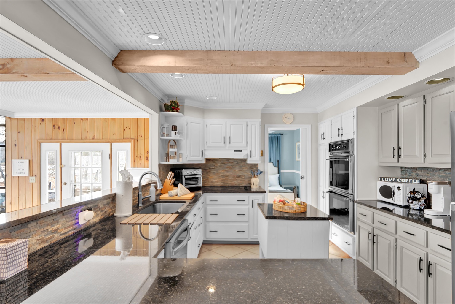 Inside, the home embraces warmth and comfort. The living room features a crackling wood stove, soft textures, and open views that make gathering with loved ones feel intimate and restorative. A bright, modern coffee bar invites slow mornings —K-cup, Smeg drip, espresso, or cocoa before heading back to the solarium.